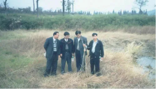 20世紀(jì)70年代,錢前(右一)在江西省東鄉(xiāng)縣(今東鄉(xiāng)區(qū))尋找野生稻。(《我為什么愛科學(xué):院士講給孩子的故事》插圖)