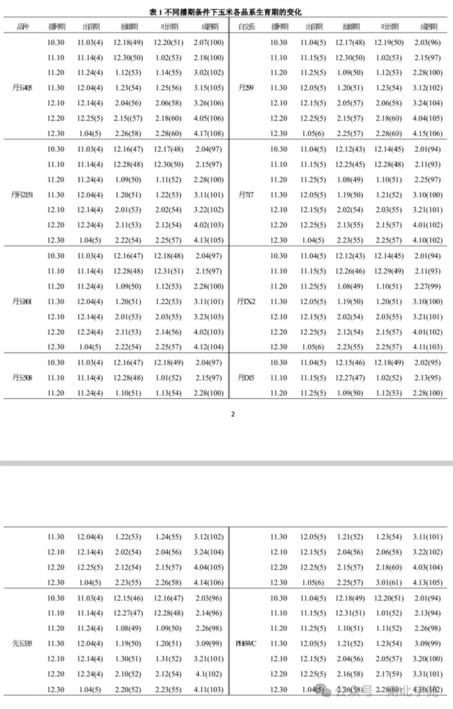 冬季海南農(nóng)田作業(yè)精細(xì),勞動(dòng)力投入量很大,比如瓜菜栽種、搭架、灌溉、田間管理、果蔬采收包裝等,在關(guān)鍵時(shí)節(jié)用工緊張,雇工成本很高。所以南繁工作根據(jù)當(dāng)?shù)氐纳a(chǎn)情況合理交錯(cuò),以免關(guān)鍵環(huán)節(jié)產(chǎn)生用工荒,增加不必要的科研投入。整個(gè)海南冬季全季干旱少雨,農(nóng)田灌溉是最為基本的生產(chǎn)條件,在選擇南繁田地時(shí)一定要考慮水源因素。在繁制種方面還要考慮隔離條件,海南農(nóng)田耕地有限、寸土寸金,南繁單位眾多,由于空間隔離條件不夠不同單位之間經(jīng)常發(fā)生地塊沖突,影響南繁工作,建議單位與農(nóng)戶、單位之間相互溝通,在空間隔離條件不夠的情況下,如果條件允許可以進(jìn)行時(shí)間隔離。通過(guò)本試驗(yàn)研究結(jié)果認(rèn)為,南繁播期延后玉米各個(gè)生育時(shí)期均勻不同程度的延遲,整個(gè)生育期也增加,播期每延后 10 天生育期平均延長(zhǎng) 1-2 天。玉米作為短日照作物對(duì)溫光相對(duì)敏感,海南 12 月下旬至 1 月末氣溫較低,播期延后以后,玉米生長(zhǎng)所需的有效積溫積累時(shí)間就會(huì)延長(zhǎng),導(dǎo)致生育期增加,同時(shí)增加了植株和穗位高度;玉米孕穗和生殖生長(zhǎng)期遭遇低溫會(huì)影響果穗分化和籽粒灌漿,易發(fā)生空稈現(xiàn)象,所以播期延后空稈率也有所增加。生育期延長(zhǎng)也增加了病蟲(chóng)草害的侵染幾率,每年進(jìn)入 2-4 月份是海南病蟲(chóng)害的重發(fā)期,玉米生長(zhǎng)中后期恰逢該時(shí)期會(huì)嚴(yán)重影響玉米產(chǎn)量。播期延后玉米果穗性狀也逐漸劣化,在密度和單株穗數(shù)不變的情況下勢(shì)必降低玉米產(chǎn)量。每年 3 月中旬以后海南的雨季逐漸開(kāi)始,不確定性的降雨說(shuō)來(lái)就來(lái),給收獲后的玉米晾曬帶來(lái)不利影響,所以玉米延后播種也增大了收獲后的晾曬難度。綜上所述,南繁玉米播種的最佳時(shí)間在每年的 10 月末至 11 月上旬,有特殊的臺(tái)風(fēng)天氣影響可適當(dāng)推延,這樣可以降低田間管理難度、降低科研成本、獲得較高產(chǎn)量、方便晾曬。儲(chǔ)運(yùn),也為北方春季的試材準(zhǔn)備贏得充足的時(shí)間。