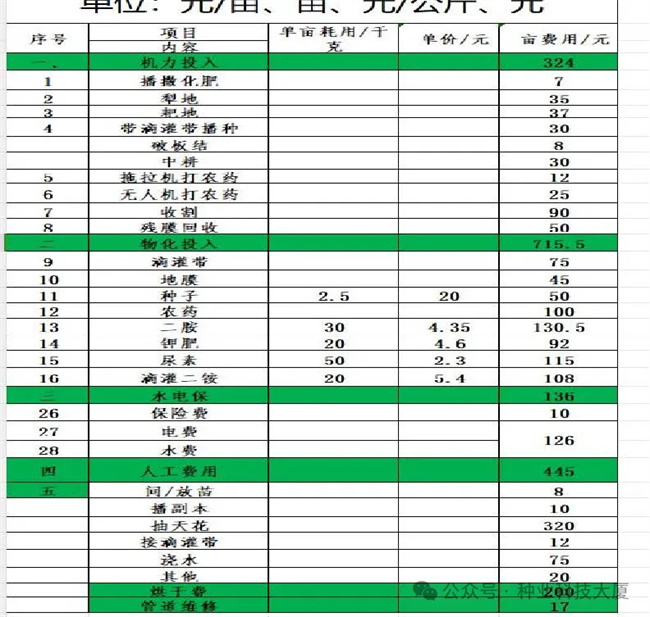 新疆伊犁某地的玉米制種成本一覽