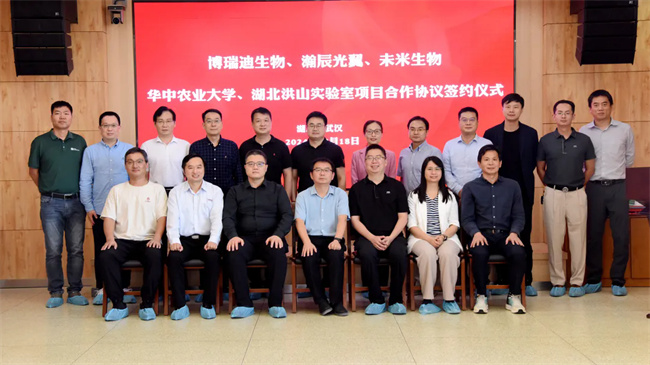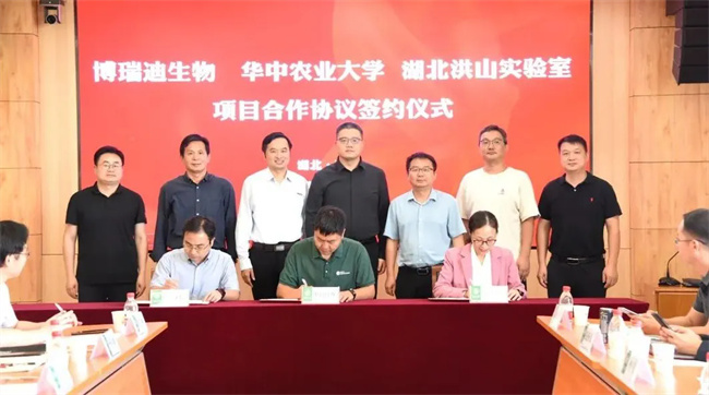 圖1 博瑞迪與華中農業(yè)大學、湖北洪山實驗室簽訂三方合作協(xié)議