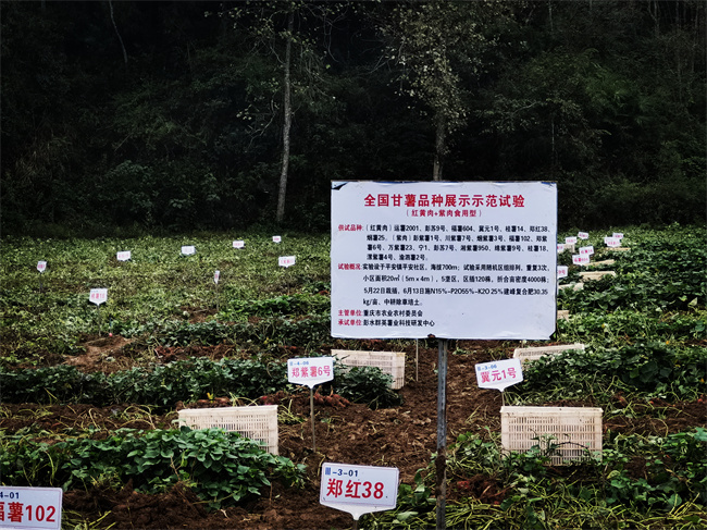 當(dāng)天,一臺(tái)秸稈還田機(jī)和一臺(tái)甘薯收獲機(jī)在田間來回穿梭,一片片青綠的甘薯莖稈和葉片被打碎還田,一個(gè)個(gè)或苗條或圓潤(rùn)的甘薯破土而出,村民們忙著撿拾、裝筐,臉上洋溢著豐收的喜悅。西南大學(xué)、浙江省農(nóng)科院、綿陽市農(nóng)科院、重慶三峽農(nóng)科院等高校、科研院所專家,重慶市農(nóng)業(yè)農(nóng)村委相關(guān)負(fù)責(zé)人,以及萬州、彭水、江津等21個(gè)區(qū)縣農(nóng)技部門負(fù)責(zé)人與部分鄉(xiāng)鎮(zhèn)技術(shù)骨干等110余人齊聚,現(xiàn)場(chǎng)觀摩甘薯綠色高產(chǎn)高效示范項(xiàng)目,共謀甘薯種業(yè)創(chuàng)新和高質(zhì)量發(fā)展。旁邊,甘薯小象甲、甘薯SPVD病毒病防治技術(shù)培訓(xùn)同時(shí)進(jìn)行,而鮮食甘薯食味品鑒活動(dòng)現(xiàn)場(chǎng)更是熱氣騰騰,甜香四溢。