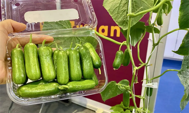 瑞克斯旺的展位前,種子扭蛋機(jī)前排起長(zhǎng)隊(duì),不少參展者領(lǐng)到了瑞克斯旺為家庭園藝消費(fèi)端量身定制的盆栽類型蔬菜種子。瑞克斯旺市場(chǎng)服務(wù)部負(fù)責(zé)人任媛媛介紹,瑞克斯旺除番茄、辣椒、茄子等傳統(tǒng)優(yōu)勢(shì)產(chǎn)品以外,還帶來了清爽脆口、輕食無負(fù)擔(dān)的姆指零食黃瓜、水果甜椒等新產(chǎn)品。“蔬菜水果化、水果零食化,是瑞克斯旺結(jié)合當(dāng)下消費(fèi)趨勢(shì)的重要育種方向及產(chǎn)品新理念。”