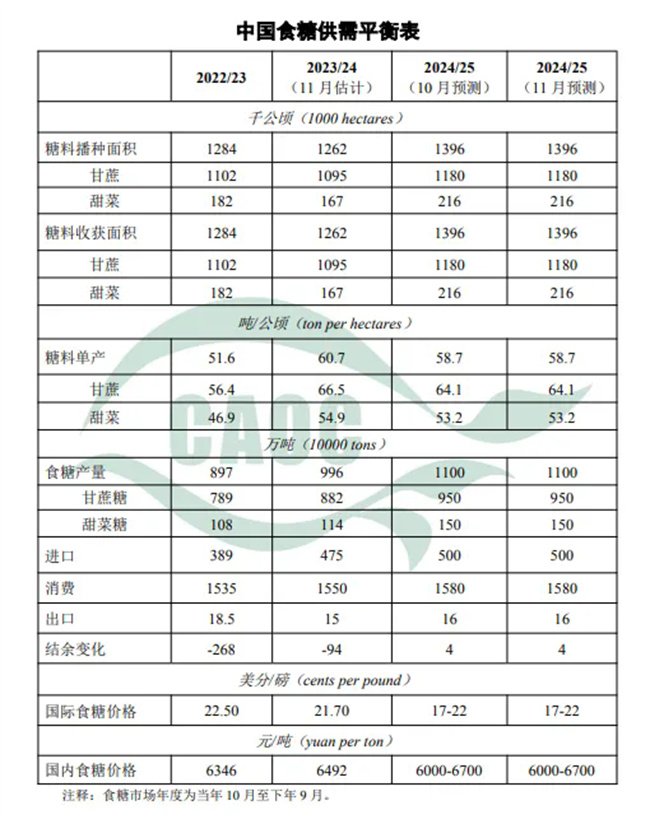 本月對2024/25年度預(yù)測數(shù)據(jù)不作調(diào)整。當前,內(nèi)蒙古、新疆、云南等主產(chǎn)區(qū)糖廠先后開榨,新糖陸續(xù)上市,食糖進口處于高位,供應(yīng)較為充足,消費處于傳統(tǒng)淡季,貿(mào)易商與終端按需采購為主。巴西中南部食糖生產(chǎn)漸近尾聲,預(yù)期產(chǎn)量下調(diào);印度、泰國等主產(chǎn)國迎來產(chǎn)糖季,預(yù)期產(chǎn)量增加。后期可重點關(guān)注國內(nèi)甜菜糖產(chǎn)銷、甘蔗糖廠開榨進度和食糖進口情況等。