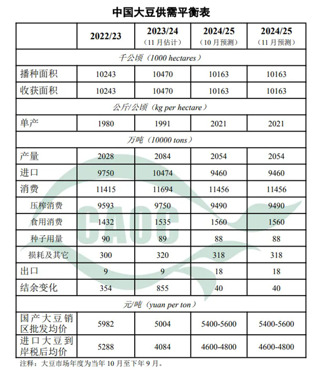 根據(jù)海關(guān)數(shù)據(jù),本月將2023/24年度大豆進口量上調(diào)245萬噸至10474萬噸。本月對2024/25年度市場供需數(shù)據(jù)不做調(diào)整。國內(nèi)大豆主產(chǎn)區(qū)收獲接近尾聲,新豆集中上市,市場供應(yīng)充足,南方產(chǎn)區(qū)蛋白含量偏高,優(yōu)質(zhì)優(yōu)價特征明顯。中儲糧、九三、中糧貿(mào)易入市收購,市場氛圍較前期有所活躍,購銷進度加快。美國新季大豆產(chǎn)量創(chuàng)下歷史最高紀錄,南美大豆產(chǎn)區(qū)天氣狀況改善,播種加速推進,全球大豆供應(yīng)寬松。