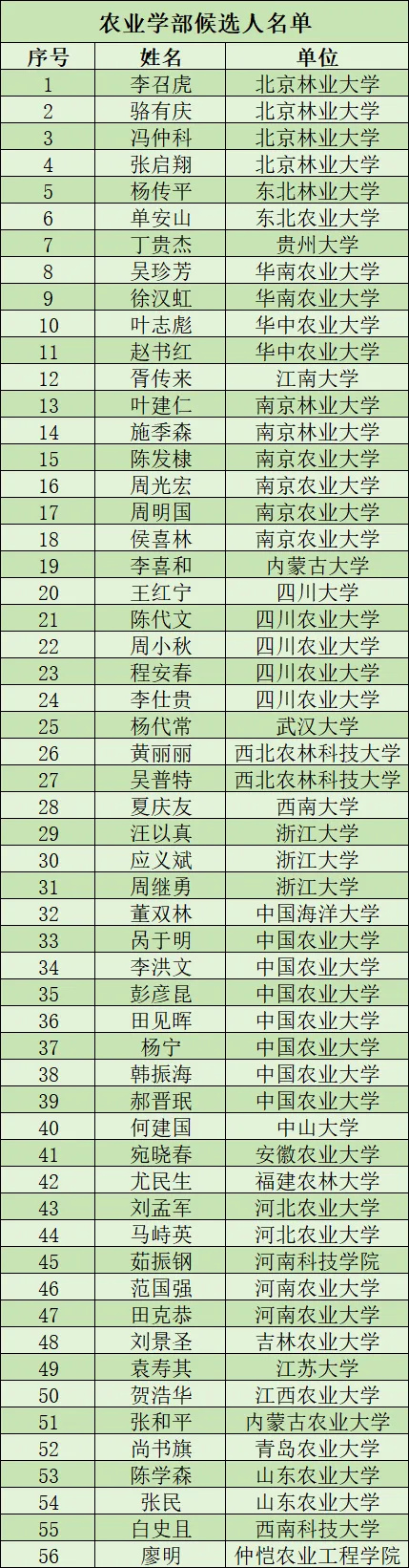 其中,農(nóng)業(yè)學(xué)部有56人入選,詳情如何?一起來看看!