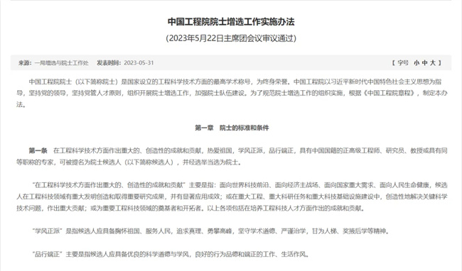 隨著2025年兩院院士增選儲(chǔ)備候選人的出爐,哪些專家能夠入選初步人選名單并成功評(píng)為院士非常值得關(guān)注。但在后續(xù)結(jié)果公示之前,我們可以先看一下“中國(guó)工程院院士增選工作實(shí)施辦法”。