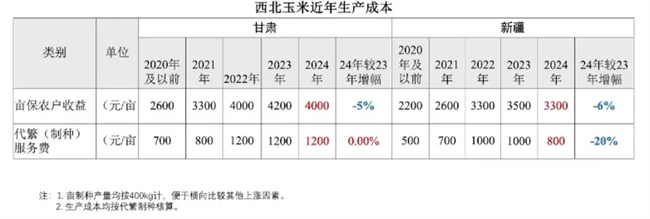 西北基地玉米制種成本