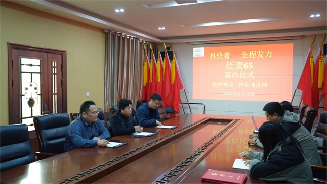 2024年11月12日,河南黃泛區(qū)地神種業(yè)有限公司與國內(nèi)頭部種業(yè)宣傳平臺種業(yè)商務(wù)網(wǎng)達成線下推廣、線上宣傳合作,并在地神種業(yè)第二會議室舉辦了“抖快看 全程發(fā)力”泛麥65簽約儀式。地神種業(yè)副總經(jīng)理賀華杰,種業(yè)商務(wù)網(wǎng)主任董偉等出席簽約。
