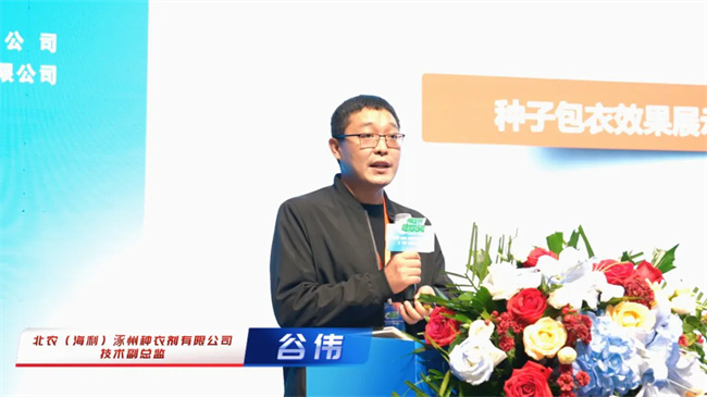 北農(nóng)(海利)涿州種衣劑有限公司技術副總監(jiān)谷偉從產(chǎn)品功效、活性成分、營養(yǎng)體系、助劑系統(tǒng)、成膜技術、加工工藝及產(chǎn)品安全控制等七方面詳細介紹了北農(nóng)(海利)產(chǎn)品應用特殊優(yōu)勢及功效。