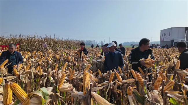 由經(jīng)銷商代表及種植大戶組成的測產(chǎn)小組,按照玉米田間實收測產(chǎn)的標準流程,在全體參會人員的共同監(jiān)督和見證下,最終測定,浚黎99的平均畝產(chǎn)量為1674斤!