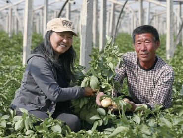 基地最終于2015年建成投用,金黎平高興,大家終于有了屬于自己的固定基地。“不用和其他作物混在一起,有效防止了病蟲害的相互傳播,田間管理也方便。而且面積夠大,每年種上300多畝,可以三年輪作。更重要的是,張家口就是馬鈴薯的主產(chǎn)區(qū),育出來的新品種當(dāng)?shù)鼐涂梢杂谩?rdquo;
