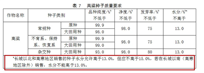 將長(zhǎng)城以北和高寒地區(qū)的種子水分“不高于16.0%”調(diào)整為“不高于15.0%”