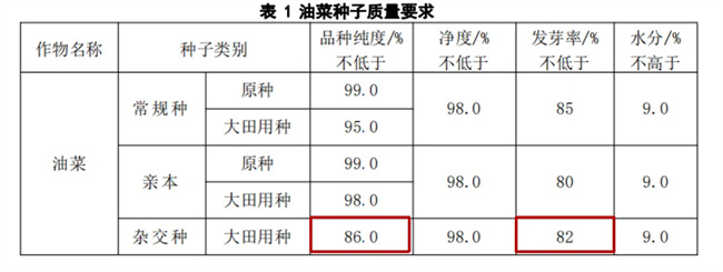 油菜種子質(zhì)量標(biāo)準(zhǔn)