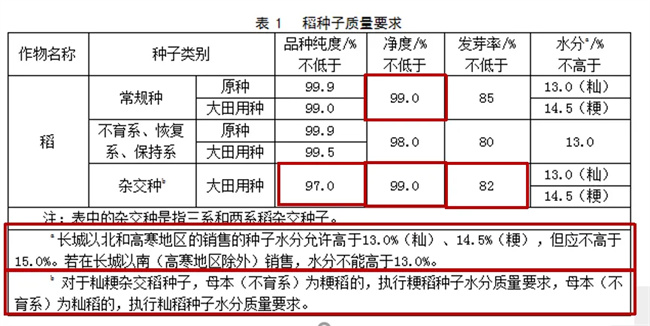 明確了秈粳雜交稻種子水分要求。解決行業(yè)反饋的秈粳雜交稻種子水分執(zhí)行標(biāo)準(zhǔn)問(wèn)題。