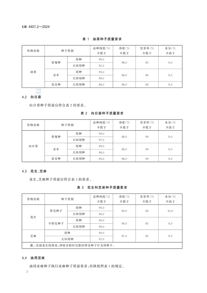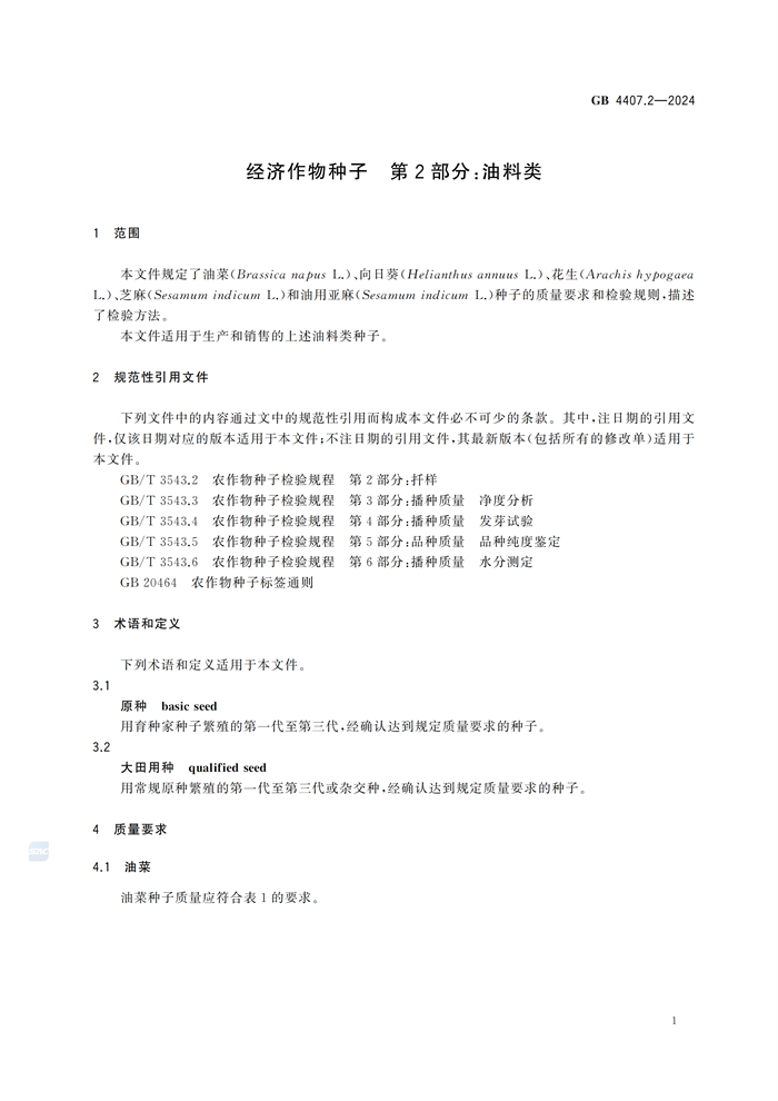 《經(jīng)濟(jì)作物種子 第2部分:油料類》(GB4407.2-2024)