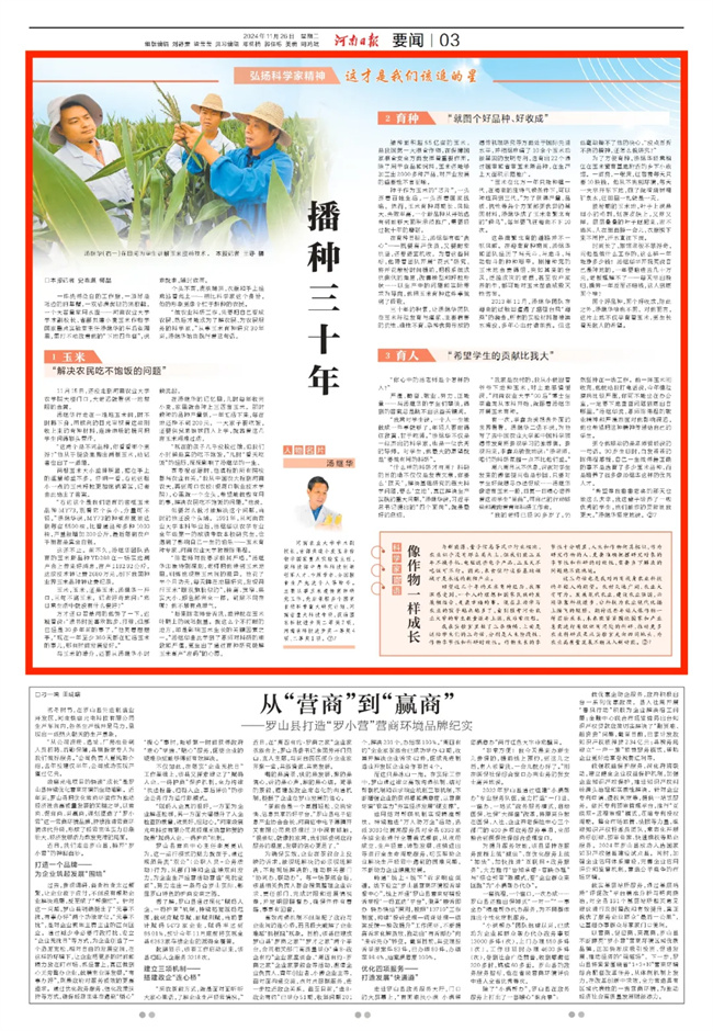 回望這三十年的玉米育種經(jīng)歷,我深深感受到,一個人的理想和國家民族的發(fā)展相結(jié)合,是最幸福的事?,F(xiàn)在主動學習農(nóng)業(yè)的孩子越來越多了,看到報考河南農(nóng)業(yè)大學的學生數(shù)量逐年上漲,我非常欣慰。