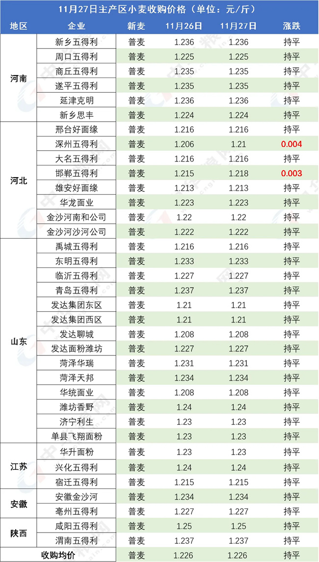 目前,主產區(qū)面粉廠收購價格基本在1.21以上,河北個別廠家略低。河北河南山東江蘇地儲小麥銷售底價1.19-1.2元/斤左右,到廠價還要核算運費成本,也是在1.2以上。