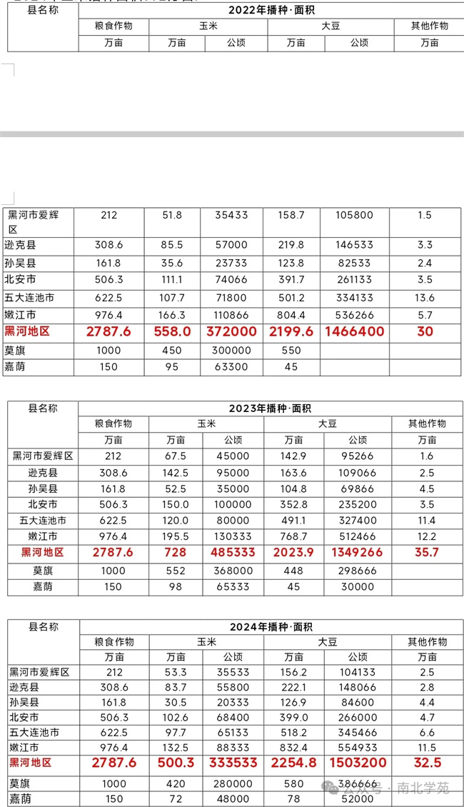 2022、2024年大豆面積突然調(diào)整,極早熟玉米面積銳減,尤其2024年同2023年對比有些玉米大縣種子銷售降幅近50%,對極早熟玉米種子企業(yè)是極大的考驗,可以說家家都有庫存,這樣就需要企業(yè)精準掌握市場,調(diào)整種子生產(chǎn)量,同時對新品種的選育也提出更高的要求。2022-2024年播種數(shù)據(jù)對比:2022年玉米播種面積1103萬畝,2023年玉米播種面積1376萬畝,2024年玉米播種面積992萬畝。