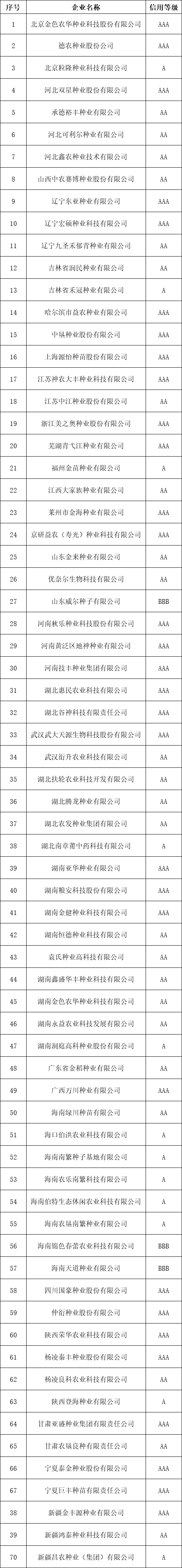 中國(guó)種子協(xié)會(huì)2024年種子行業(yè)信用評(píng)價(jià)結(jié)果公示