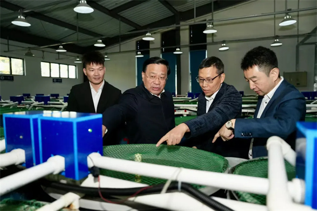 韓俊來到廣東海大集團股份有限公司,走進試驗車間了解魚類營養(yǎng)實驗情況,詢問各類飼料配方研發(fā)、成本效益等。韓俊指出,要高度重視和充分發(fā)揮農業(yè)“鏈主”企業(yè)在科技創(chuàng)新上的作用,帶動農業(yè)產業(yè)節(jié)本增效、提檔升級。韓俊對企業(yè)開展低蛋白日糧技術研究非常關心,專門了解企業(yè)飼用豆粕減量替代等情況。他強調,要充分挖掘各種蛋白飼料資源,合理降低畜禽水產飼料豆粕使用,持續(xù)促進畜禽養(yǎng)殖節(jié)糧降耗。