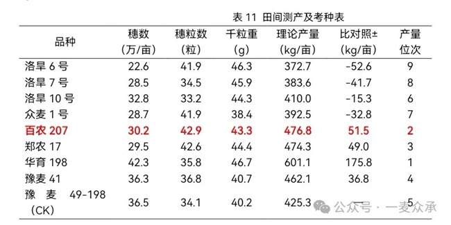 說實話,雖然產(chǎn)量位次有高低,但是絕對產(chǎn)量差異不大。不過,卻說明了一個事實。有不少人說,百農(nóng)207是一個廣適穩(wěn)產(chǎn)品種,并不是一個高產(chǎn)品種。通過三年試驗,證明了一點,百農(nóng)207產(chǎn)量不低。