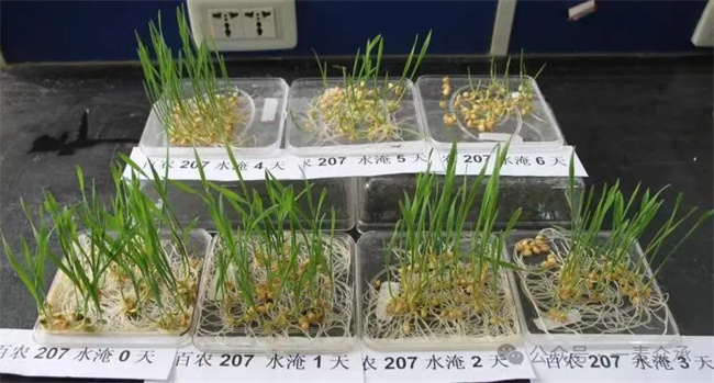 后來,我安排在實驗室對不同小麥品種種子及拔節(jié)期進(jìn)行水淹試驗,發(fā)現(xiàn)矮抗58耐淹3天,百農(nóng)207耐淹6天,百農(nóng)607耐淹9天。腦子里臨時湊了個吉利數(shù)“369”,讓我記憶猶新。