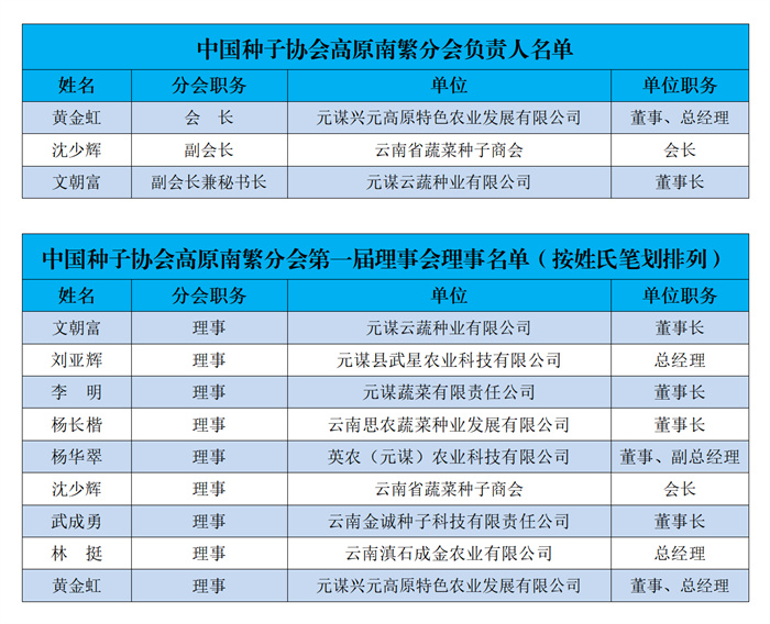 2024年12月6日,中國種子協(xié)會高原南繁分會第一次會員大會暨成立會在云南元謀召開。會議審議通過了《中國種子協(xié)會高原南繁分會工作條例》,選舉產(chǎn)生了中國種子協(xié)會高原南繁分會第一屆理事會,由9家理事單位組成。元謀興元高原特色農(nóng)業(yè)發(fā)展有限公司董事、總經(jīng)理黃金虹當(dāng)選第一屆會長,云南省蔬菜種子商會會長沈少輝當(dāng)選副會長,元謀云蔬種業(yè)有限公司董事長文朝富當(dāng)選副會長兼秘書長。