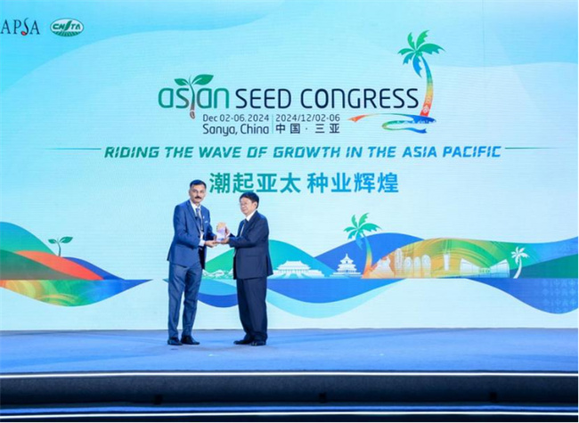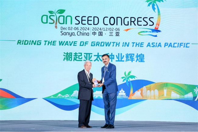 大會(huì)開幕式上,聯(lián)合國(guó)糧食及農(nóng)業(yè)組織總干事屈冬玉發(fā)表視頻致辭,時(shí)任APSA主席馬尼什•帕特(Manish Patel)、農(nóng)業(yè)農(nóng)村部黨組成員黃艷、海南省人民政府黨組成員、副省長(zhǎng)李鋒出席活動(dòng)并致辭。APSA表彰了由中國(guó)種子貿(mào)易協(xié)會(huì)和中國(guó)種子協(xié)會(huì)共同組織推薦的“中國(guó)種業(yè)卓越貢獻(xiàn)獎(jiǎng)”獲獎(jiǎng)?wù)?mdash;—中國(guó)工程院院士、中國(guó)種子協(xié)會(huì)副會(huì)長(zhǎng)萬(wàn)建民先生(公共部門)和安徽張海銀種業(yè)基金會(huì)理事長(zhǎng)、合肥豐樂(lè)種業(yè)股份有限公司和安徽荃銀高科種業(yè)股份有限公司主要?jiǎng)?chuàng)始人張海銀先生(私營(yíng)部門)。該獎(jiǎng)項(xiàng)不僅肯定了兩位獲獎(jiǎng)?wù)唛L(zhǎng)期以來(lái)在種業(yè)領(lǐng)域做出的卓越貢獻(xiàn),也彰顯了中國(guó)種業(yè)人在創(chuàng)新、執(zhí)著和奉獻(xiàn)方面的精神風(fēng)貌。