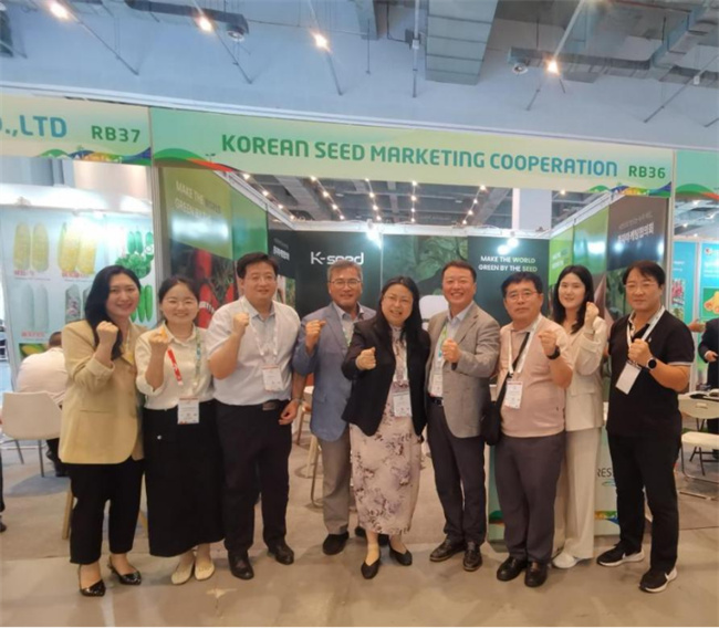 中國(guó)種子協(xié)會(huì)代表團(tuán)與韓國(guó)種子協(xié)會(huì)在會(huì)場(chǎng)交流