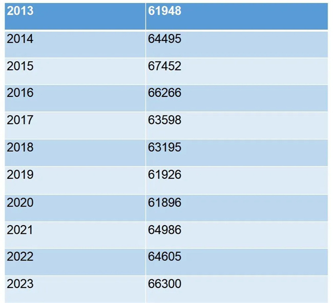 據(jù)國(guó)家統(tǒng)計(jì)局統(tǒng)計(jì),2023年,中國(guó)玉米種植面積達(dá)66328.35萬(wàn)畝(約合6.63億畝),同比較2022年增加了2.67%;與2013年的61948.82萬(wàn)畝相比,近10年間增加4379.53萬(wàn)畝,增幅約7.07%,年均復(fù)合增長(zhǎng)率約0.69%。