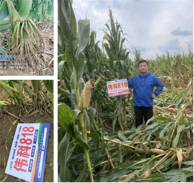偉科818——白軸大穗品種,生育期102天,株高2.5米,穗位101厘米,穗長19-23厘米,穗行數(shù)16-18行。