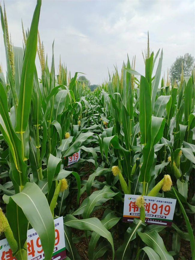 偉科919紅軸大穗型品種,聚合豫玉22穗大結(jié)實性好、抗穗腐病粗縮病、耐瘠薄等優(yōu)良特性,導(dǎo)入了堅稈抗銹基因,雄穗分支多、花粉量大活力強,實現(xiàn)了災(zāi)年穩(wěn)產(chǎn)、豐年更高產(chǎn)的品種推廣應(yīng)用優(yōu)勢。