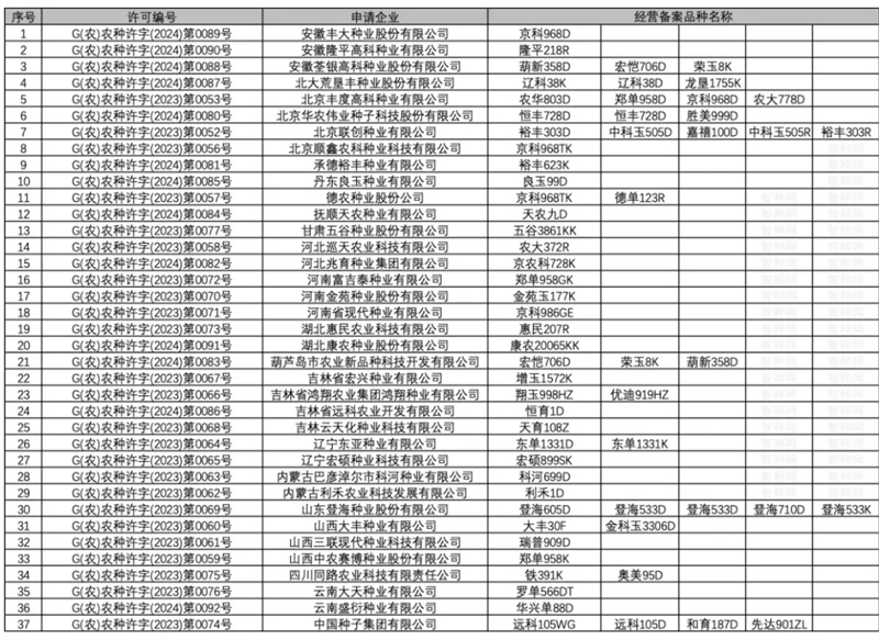 以下37家企業(yè)可進行轉(zhuǎn)基因玉米品種生產(chǎn)經(jīng)營: