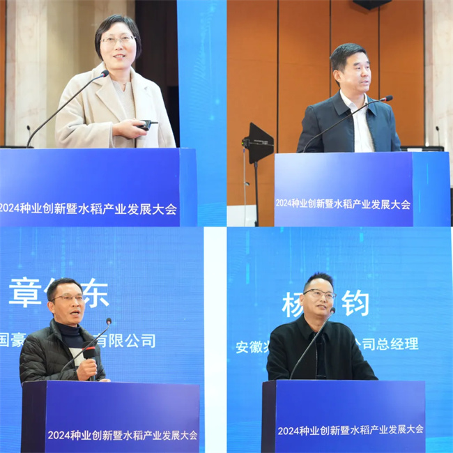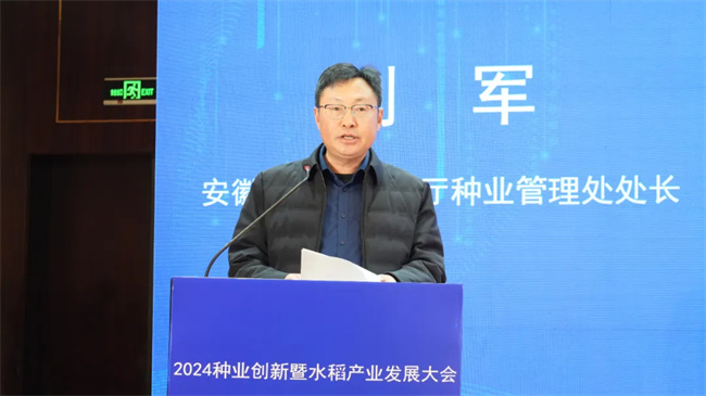 安徽省農(nóng)業(yè)農(nóng)村廳種業(yè)管理處處長劉軍代表省農(nóng)業(yè)農(nóng)村廳出席會議并講話。他說,安徽是農(nóng)業(yè)大省,也是種業(yè)大省,十四五以來,全省持續(xù)推進(jìn)種質(zhì)資源的保護(hù)和利用、種業(yè)創(chuàng)新攻關(guān)、企業(yè)扶優(yōu)、基地提升、市場凈化等五大行動任務(wù)落實(shí)落地,推動種業(yè)“保、育、繁、推、服”全產(chǎn)業(yè)鏈融合發(fā)展,取得了一批標(biāo)志性成果,種業(yè)發(fā)展主要指標(biāo)進(jìn)入全國前列。他指出,水稻是安徽省主要糧食作物,是保障國家糧食安全的重器,安徽優(yōu)越的生態(tài)環(huán)境和得天獨(dú)厚的水熱資源,為水稻產(chǎn)業(yè)發(fā)展奠定良好的基礎(chǔ)。根據(jù)省委省政府打造千億斤江淮糧倉的決策部署,實(shí)施新一輪糧食產(chǎn)量提升行動,并在全國率先提出單種、單收、單儲優(yōu)質(zhì)糧食發(fā)展道路。2024年,全省糧食種植面積1.1億畝,產(chǎn)量836.9億斤,再創(chuàng)歷史新高。實(shí)現(xiàn)了連續(xù)21年豐收。其中,水稻種植面積達(dá)到了3744萬畝,總產(chǎn)326億斤,占全省糧食總產(chǎn)40%,全省優(yōu)質(zhì)專用水稻種植面積占比達(dá)到88%,45%以上的稻米外銷,特別是水稻品種的持續(xù)優(yōu)化,為產(chǎn)量的提升打下了堅(jiān)實(shí)的基礎(chǔ)。通過揭榜掛帥等形式,組織包括18家科研院校和龍頭種企,開展為期五年的審定水稻良種聯(lián)合攻關(guān),持續(xù)支持頭部企業(yè)參與國家水稻育種攻關(guān)項(xiàng)目,育審了一批高產(chǎn)高效、綠色優(yōu)質(zhì)、專用特用的水稻新品種,進(jìn)一步鞏固了全省雜交水稻育種在全國領(lǐng)先地位。他強(qiáng)調(diào),水稻產(chǎn)業(yè)是全省種業(yè)振興的重要一環(huán),希望以本次大會成功召開為契機(jī),一要強(qiáng)化育種科研,創(chuàng)新支撐堅(jiān)持市場導(dǎo)向,加強(qiáng)優(yōu)異種質(zhì)資源的鑒定挖掘和改良創(chuàng)制,繼續(xù)深化水稻良種攻關(guān),強(qiáng)化關(guān)鍵育種技術(shù)攻關(guān)研發(fā),選育產(chǎn)量高、品質(zhì)優(yōu)、有特色、專用好的亟需的水稻品種;二要強(qiáng)化水稻種企的主體地位,引導(dǎo)種企找準(zhǔn)水稻產(chǎn)業(yè)市場定位,完善科企合作、銀企合作,企企合作機(jī)制,支持企業(yè)牽頭和參與、承擔(dān)更多的科研攻關(guān)任務(wù),落實(shí)好重大水稻品種研發(fā)推廣應(yīng)用一體化項(xiàng)目,不斷提高企業(yè)水稻創(chuàng)新主體地位,實(shí)現(xiàn)質(zhì)量更高、效益更好、競爭力更強(qiáng)地發(fā)展;三要強(qiáng)化優(yōu)質(zhì)稻米品牌建設(shè),加快不同稻作類型區(qū)水稻良種良法研究,推廣綠色高效生產(chǎn)機(jī)械化集成技術(shù)應(yīng)用,為水稻產(chǎn)業(yè)高質(zhì)量發(fā)展提供生產(chǎn)支撐,加快優(yōu)質(zhì)稻米品種品牌融合,打造培育一批地域特色突出、產(chǎn)品特色鮮明的稻米區(qū)域公用品牌,持續(xù)提高安徽稻米產(chǎn)業(yè)競爭力;四要強(qiáng)化種業(yè)服務(wù)體系建設(shè),對標(biāo)種業(yè)強(qiáng)省建設(shè)的五年、十年目標(biāo),前瞻性的重點(diǎn)支持十五五全省發(fā)展戰(zhàn)略研究和制定,謀劃實(shí)施一批牽引性的項(xiàng)目,加快打造在全國具有重要影響力的水稻育種平臺、種業(yè)企業(yè)和核心品種,政策驅(qū)動、機(jī)制撬動、技術(shù)推動、項(xiàng)目帶動、體系聯(lián)動,推動水稻種業(yè)創(chuàng)新和水稻產(chǎn)業(yè)的高質(zhì)量發(fā)展。