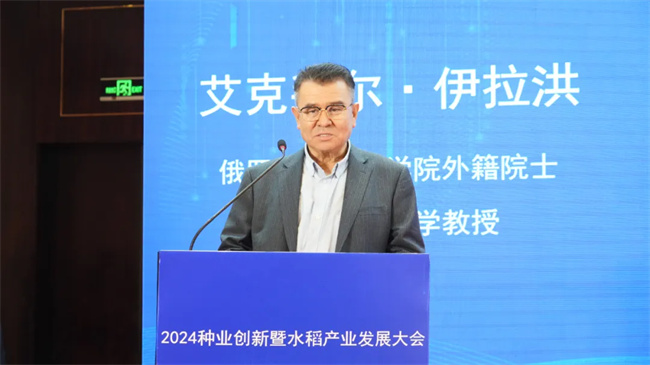 俄羅斯自然科學(xué)院外籍院士、新疆農(nóng)業(yè)大學(xué)教授艾克拜爾•伊拉洪就土壤科學(xué)研究與種業(yè)的發(fā)展的重要性做學(xué)術(shù)交流。