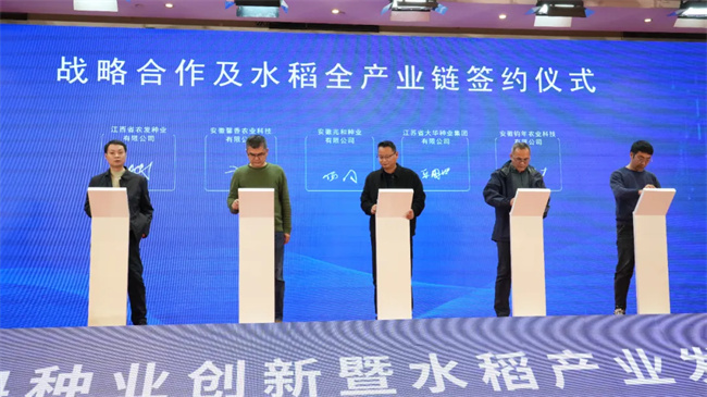 為加強(qiáng)科企合作,助力實(shí)現(xiàn)種子產(chǎn)業(yè)育、繁、推與糧食產(chǎn)業(yè)倉、加、銷、期貨的一體化協(xié)同發(fā)展格局,會上還舉行了科企戰(zhàn)略合作及水稻全產(chǎn)業(yè)鏈簽約儀式。相信在“科研單位+種子企業(yè)+加工企業(yè)”的合作形式下,優(yōu)良品種得到大面積推廣應(yīng)用,為企業(yè)生產(chǎn)更多更好的優(yōu)質(zhì)原糧,為農(nóng)民帶來實(shí)實(shí)在在的效益,助力鄉(xiāng)村振興。
