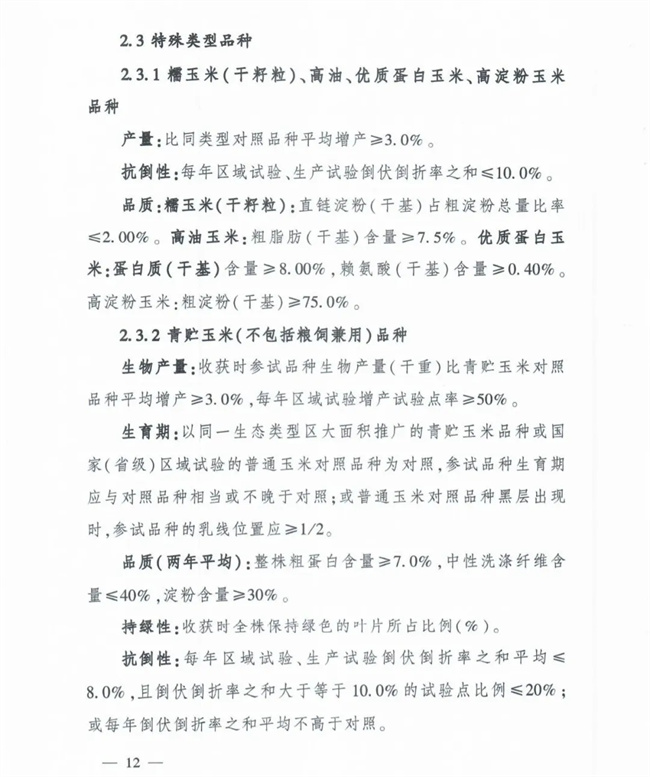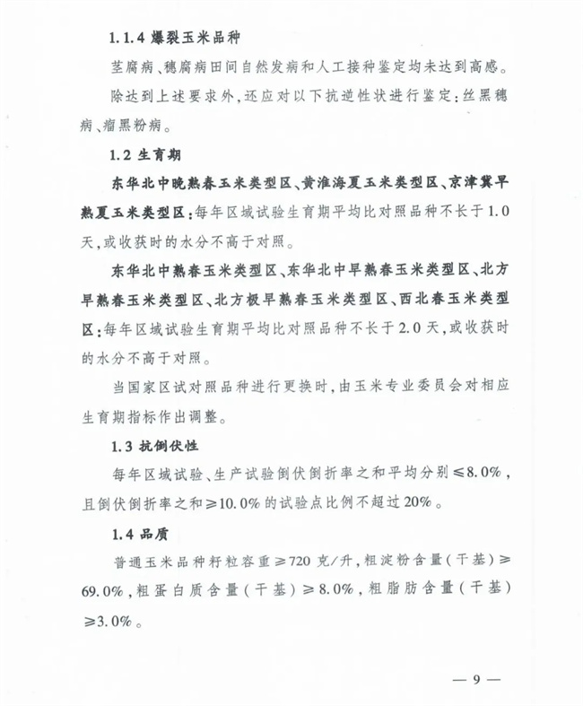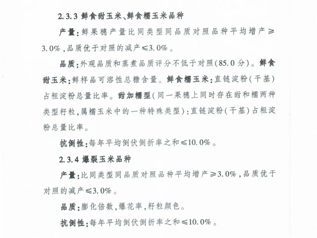 2、主要農(nóng)作物審定標準: