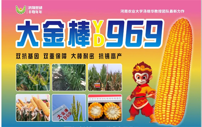 大金棒-YD969是由河南慧博科瑞迪農(nóng)業(yè)科技有限公司聯(lián)合河南農(nóng)業(yè)大學(xué)湯繼華教授團隊共同選育的豐產(chǎn)性突出、抗逆性強、綜合抗性好、耐密、廣適的玉米新品種。