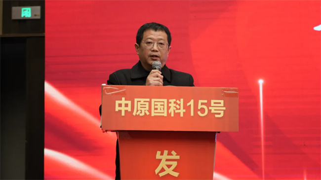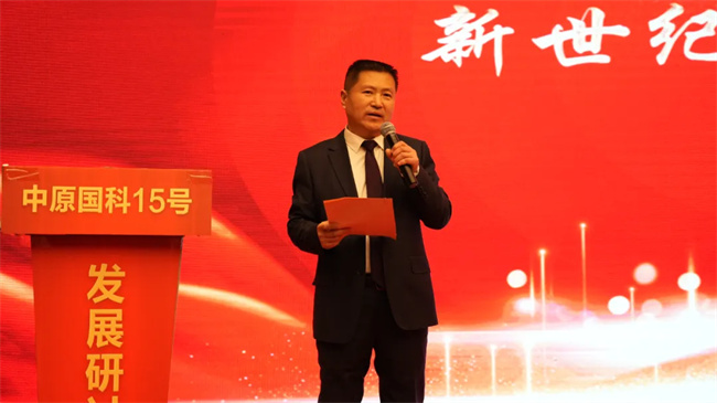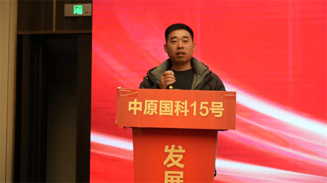 新世紀種業(yè)總經理助理兼中原國科15號產品線負責人張寅生向與會嘉賓回顧了公司發(fā)展歷程,展示了公司取得的高新技術成果。他說,近年來,公司圍繞小麥重大技術難題開展育種攻關,整合育種資源,創(chuàng)新種質資源,引進山東農業(yè)大學、安徽農業(yè)大學高水平科研團隊,小麥育種實現(xiàn)了從抗病到高產再到優(yōu)質強筋、晚播早熟等突破性進展?;昭?6在2020年獲得黃淮7省的審定或認定,是安徽省培育的適應范圍最廣的小麥新品種;節(jié)水抗旱型品種徽研56是安徽省唯一通過國家級旱地組審定的小麥新品種。公司于2024年通過國家審定的中原國科15號,矮稈大穗大粒,優(yōu)質高產經過近幾年示范推廣,其優(yōu)秀的也得了到大家共同見證,農民喜歡,加工企業(yè)歡迎。他說,展望未來,希望通過公司已建立較為完善的市場營銷網絡和技術服務體系,以“品牌引領、高產示范、農技普及、企戶對接”的小麥良種推廣模式,攜手大家,同創(chuàng)共贏。