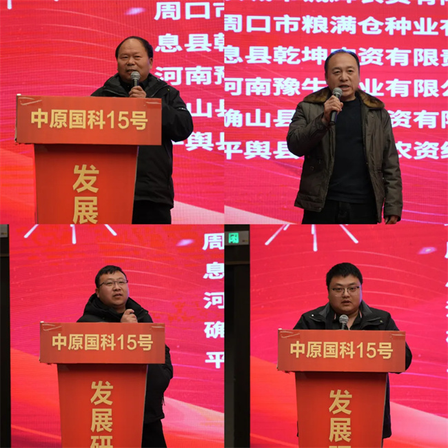 在隨后的互動交流環(huán)節(jié),面粉加工企業(yè)代表在發(fā)言時表示,中原國科15號品質優(yōu),是面條和饅頭的優(yōu)質原料,符合市場需求和面粉加工企業(yè)需要,市場推廣及應用前景廣闊,希望各位伙伴同心協(xié)力,為推動產業(yè)健康發(fā)展做出更大貢獻;各經銷商代表在發(fā)言時均認為,中原國科15號個子低,抗倒好,大穗子,粒重高,產量高,綜合抗性好,產量高,市場需求熱度高,自己非常有信心打開市場。大家分別就下一步中原國科15營銷目標的制定及市場拓展策略,有效的執(zhí)行力等作出堅定承諾和表態(tài),力爭將中原國科15號打造成自己區(qū)域的第一大單品。