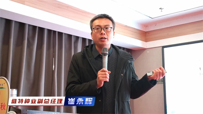 維特種業(yè)副總經(jīng)理崔永輝對(duì)小麥種子市場(chǎng)的現(xiàn)狀和發(fā)展趨勢(shì)進(jìn)行了全面且深入的分析,并表示,在當(dāng)前競(jìng)爭(zhēng)激烈的市場(chǎng)環(huán)境中,準(zhǔn)確把握市場(chǎng)動(dòng)態(tài)對(duì)于企業(yè)和經(jīng)銷(xiāo)商的發(fā)展至關(guān)重要。他說(shuō),維特種業(yè)依托秋樂(lè)種業(yè)在科研、品牌影響力、渠道體系、技術(shù)服務(wù)體系、質(zhì)量體系和市場(chǎng)管控能力等方面展現(xiàn)出顯著的優(yōu)勢(shì),相信會(huì)為在座的各位經(jīng)銷(xiāo)商朋友提高競(jìng)爭(zhēng)力,帶來(lái)更多的發(fā)展機(jī)遇。對(duì)于經(jīng)銷(xiāo)商而言,品種、品牌、宣傳、合作伙伴和縣級(jí)代理商的選擇至關(guān)重要,正確的選擇是成功的關(guān)鍵。崔永輝以其獨(dú)到的視角,為與會(huì)經(jīng)銷(xiāo)商提供了寶貴的建議,幫助他們了解并把握這些要素,在市場(chǎng)中做出明智的決策,從而實(shí)現(xiàn)更好的發(fā)展。展望2025年,崔永輝充滿信心地表示,在公司持續(xù)的科研實(shí)力、完善的服務(wù)、強(qiáng)大的品牌支持以及全體經(jīng)銷(xiāo)商的共同努力下,新的一年必將圓滿完成再破億斤的奮斗目標(biāo)!