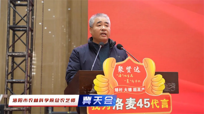 在農(nóng)業(yè)發(fā)展的征程中,科研力量始終是推動前行的關鍵引擎。洛陽市農(nóng)林科學院憑借其專業(yè)的知識和執(zhí)著的精神,科研人員不斷探索創(chuàng)新,培育出適應環(huán)境變化和市場需求的優(yōu)良品種。洛陽市農(nóng)林科學院總農(nóng)藝師冀天會在大會致辭中表示,洛麥45是洛陽農(nóng)林科學院高海濤研究員團隊針對近年氣候變化、圍繞市場需求潛心培育的矮稈抗倒、抗逆能力強、穩(wěn)產(chǎn)高產(chǎn)小麥品種。未來,相信小麥所與聚賢達農(nóng)業(yè)的強強聯(lián)合,賦予洛麥45優(yōu)良品種更多價值,為更多的農(nóng)民帶來實實在在的收益,為經(jīng)銷商朋友帶來豐厚回報,為保障糧食安全和鄉(xiāng)村振興貢獻更多力量!