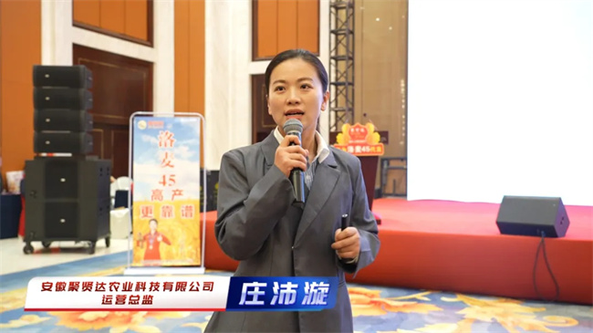 探討新形勢下的營銷之道,短視頻營銷是繞不過的話題。安徽聚賢達農(nóng)業(yè) 科技有限公司運營總監(jiān)莊沛漩回顧了過去一年新媒體運營工作成果,深入探討未來發(fā)展規(guī)劃,為高效利用新媒體賦能營銷業(yè)績再上新臺階奠定堅實基礎。如何讓新品種快速的進入大眾的視野,是當下重要的工作,針對當前市場形勢,她部署了年度核心工作,并現(xiàn)場發(fā)布了2025年度洛麥45扶持政策,助力經(jīng)銷商進一步提高競爭力。
