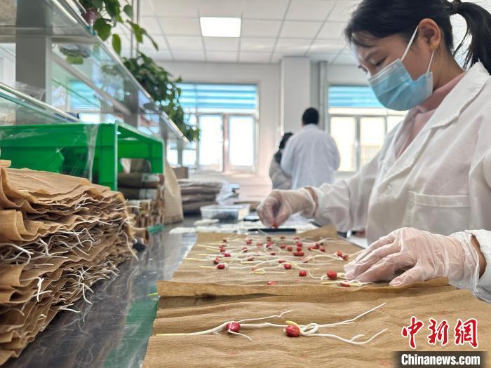 圖為張掖市臨澤縣一制種企業(yè)工作人員進(jìn)行玉米種子的檢測。(資料圖)楊艷敏 攝