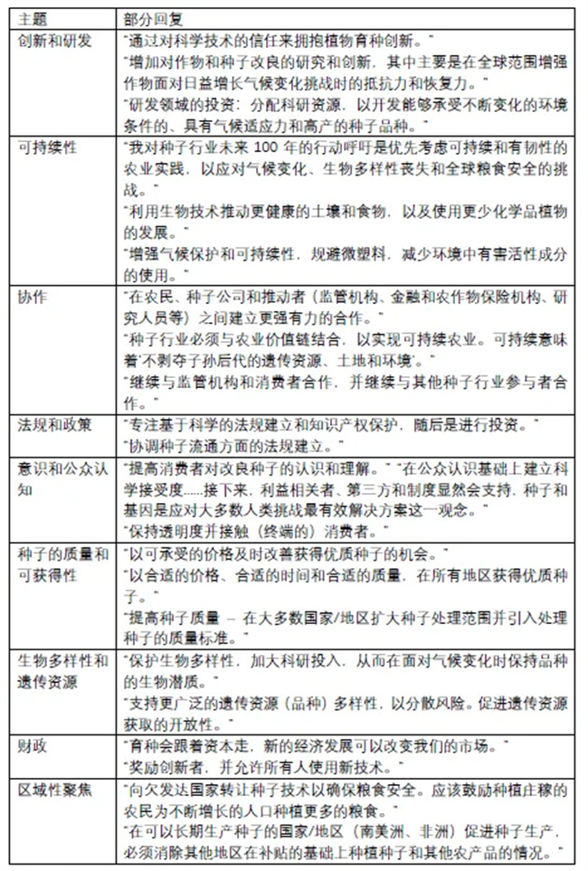 當被問及對未來100年種子行業(yè)的行動呼吁時,受訪者的回答主要圍繞九個主題: