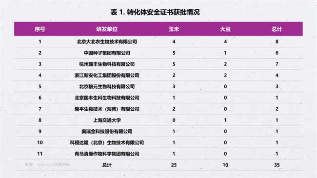 早在多年前,中國就已經(jīng)開始考慮審批和發(fā)放轉(zhuǎn)基因玉米、大豆的安全應(yīng)用證書,近年來更是加快了步伐。玉米與大豆轉(zhuǎn)基因轉(zhuǎn)化體安全證書的獲批情況,揭示了當(dāng)前國內(nèi)生物育種領(lǐng)域激烈的競爭格局。