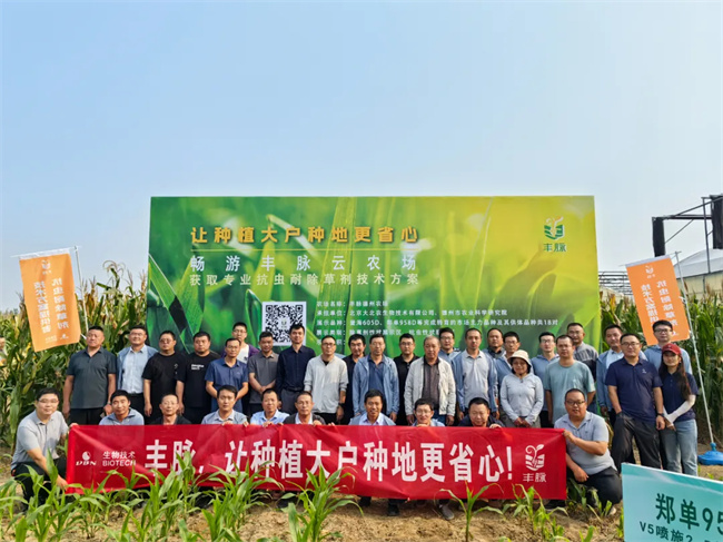 在 2024 年的示范種植過程中,廣受到大農(nóng)戶、種植合作社、農(nóng)技合作聯(lián)社的一致好評,他們反饋,在豐脈轉(zhuǎn)基因玉米田噴施草甘膦后,雜草 5-7 天左右全部干枯死亡,而豐脈玉米沒有任何的變化,反倒更加濃綠;不會像之前噴施常規(guī)除草劑后出現(xiàn)黃化、燒苗、不長的情況。免除了二次用藥的成本與風(fēng)險,降低了投入與成本,提高了種植效率。