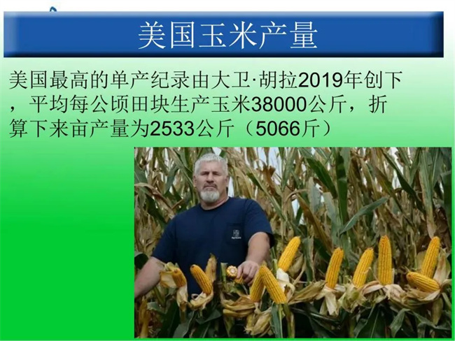 2023年10月15號,美國玉米高產(chǎn)紀(jì)錄又一次被弗吉尼亞州的大衛(wèi)•胡拉打破,每公頃產(chǎn)量達(dá)到了39615公斤,折算成每畝2641公斤;大衛(wèi)胡拉為提升產(chǎn)量,提高了種植密度,每畝平均保苗在8500株以上,為解決增加密度后出現(xiàn)的空棵、花粒、病害、倒伏等問題,他在管理過程中,多次噴施復(fù)合糖和定向元素,不僅滿足了作物生長的營養(yǎng),同時也起到調(diào)節(jié)和防病的作用,極大的提高了玉米的品質(zhì)和產(chǎn)量。