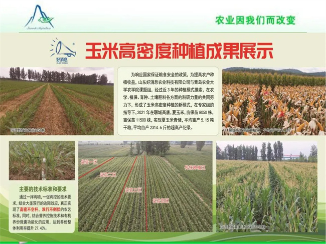 從2022年開始至今,玉米密植種植面積在黃淮海區(qū)域逐步逐年提高,各種業(yè)公司也大量推出耐密、抗逆、品質(zhì)好的優(yōu)良玉米品種。到2024年玉米密植種植面積已經(jīng)達(dá)到60%-70%。紅綠橙功能性產(chǎn)品的成功應(yīng)用方案,大大降低了高密空棵、逆境花粒比例,雨多防病害,控旺抗倒伏的高產(chǎn)模式受到市場普遍歡迎和高度認(rèn)可。