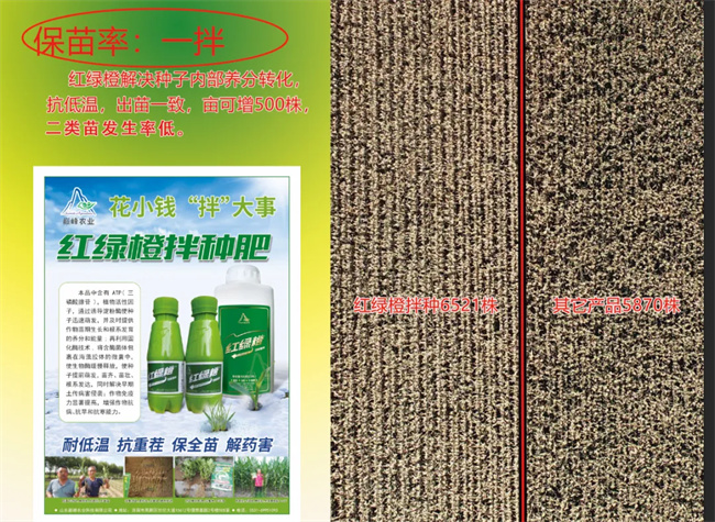 一拌:玉米拌種用紅綠橙微囊懸浮液體肥能抗重茬藥害,高密種植可增加500株苗。